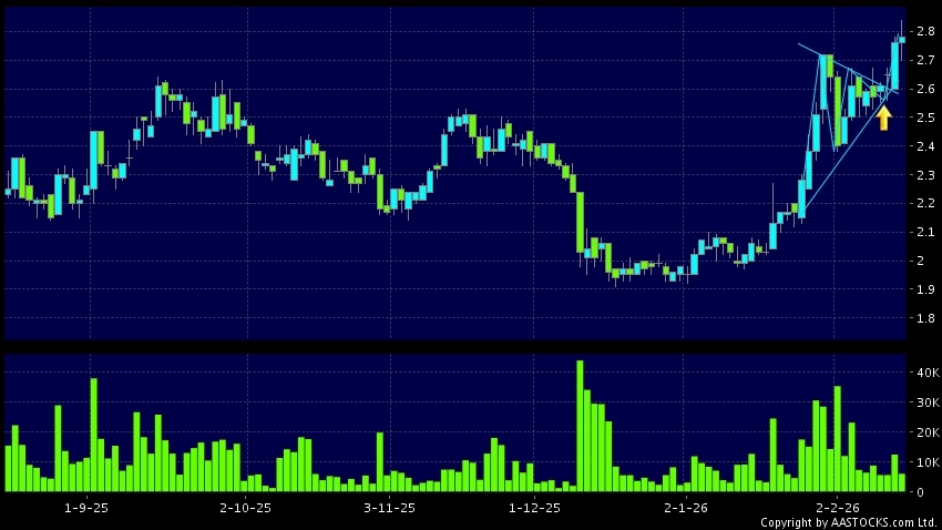 Triangle Breakout means the volatility of price movement is decreasing, stock price finally broke the top of triangle. An upward trend will start.(HK stocks quote is delayed for at least 15 mins.Short Selling Data as at 2026-02-26 16:25.)