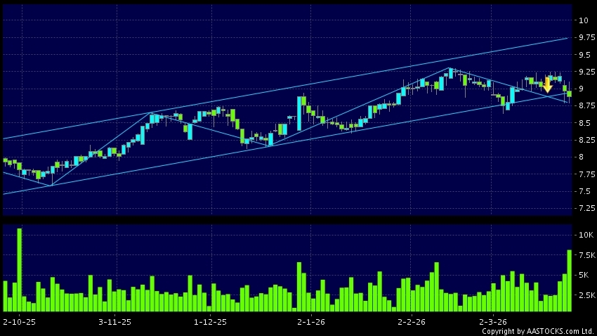 SHENZHEN INT'L(00152.HK) appears a downside range breakout. Last printed at 8.860; fell 1.116%; on volume of 8.71M shares and turnover of $77.37MRecent PerformanceIn 3 days: -2.957...
