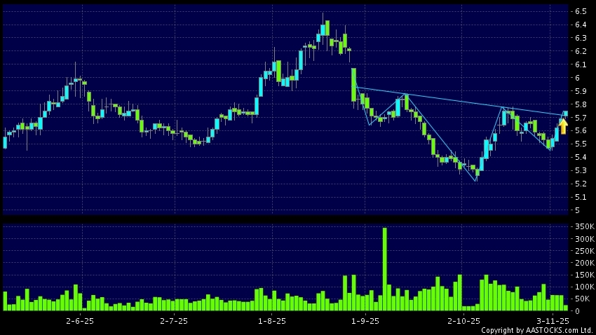 Head Shoulders bottom is a typical bullish signal, when stock price breaks the resistant level, uptrend would possibly start.(HK stocks quote is delayed for at least 15 mins.Short Selling Data as at 2025-11-06 12:25.)