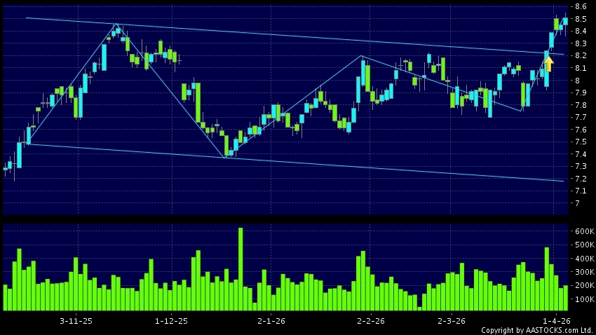 Disclaimer:The information, financial market data, quotes, charts, statistics and / or various technical analysis indicators are automatically generated based on the analyses and interpretations of publicly available information and should be used as references only at your own discretion. Such automatically generated content does not reflect the views or opinions of AASTOCKS.com Limited nor does AASTOCKS.com Limited make any guarantees to their accuracy, completeness, timeliness or correctness. You are advised to consult independent professional advice to verify pricing information or to obtain more detailed market information. Any uses of information or trades executed following the said automatically generated content are taken at your own risk for your own account.