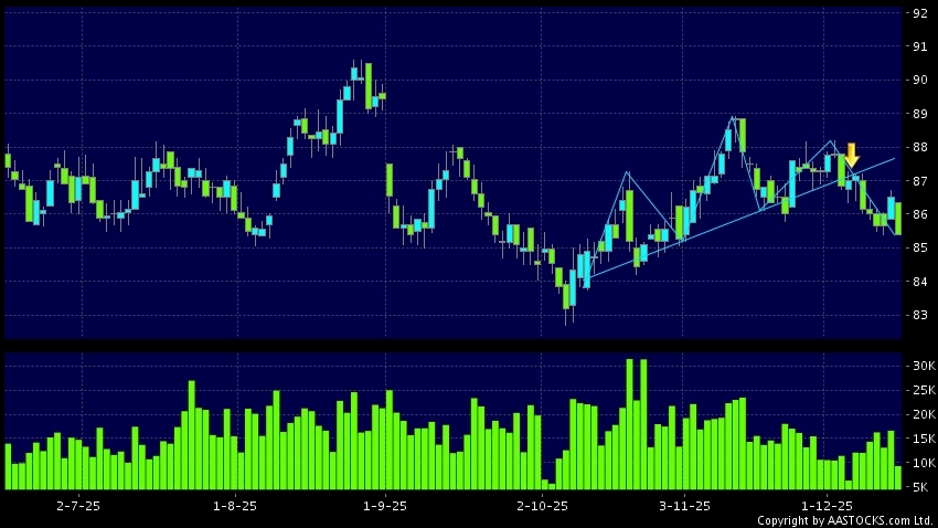 Head Shoulders top is a typical bearish signal, when stock price breaks the supportive level, downtrend would possibly start.(HK stocks quote is delayed for at least 15 mins.Short Selling Data as at 2025-12-15 16:25.)