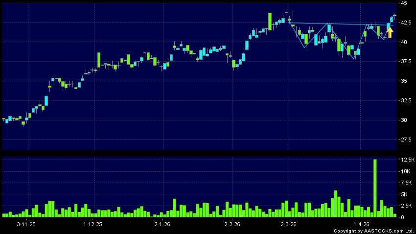 HWORLD-S(01179.HK) appears an upside breakout, rose above the neckline. Last printed at 43.480; rose 0.788%; on volume of 766.70K shares and turnover of $33.03MRecent PerformanceIn...