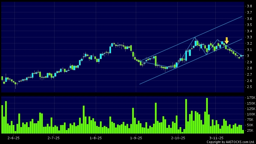 CGN POWER(01816.HK) appears a downside range breakout. Last printed at 3.010; Flattish; on volume of 28.46M shares and turnover of $84.79MRecent PerformanceIn 3 days: +0.333%In 5 d...