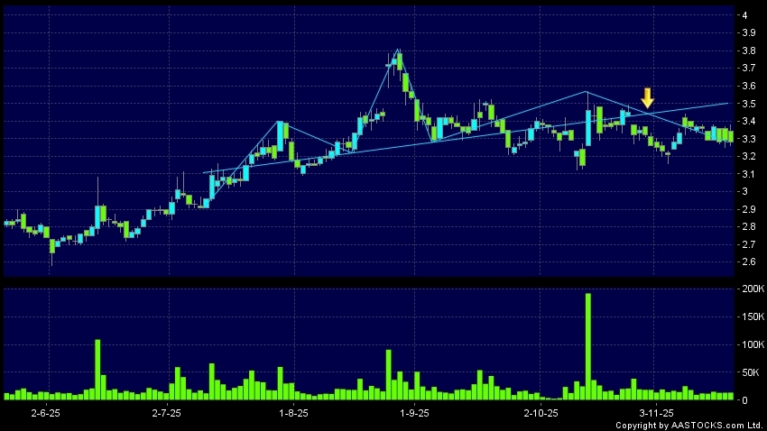 Head Shoulders top is a typical bearish signal, when stock price breaks the supportive level, downtrend would possibly start.(HK stocks quote is delayed for at least 15 mins.Short Selling Data as at 2025-11-21 16:25.)