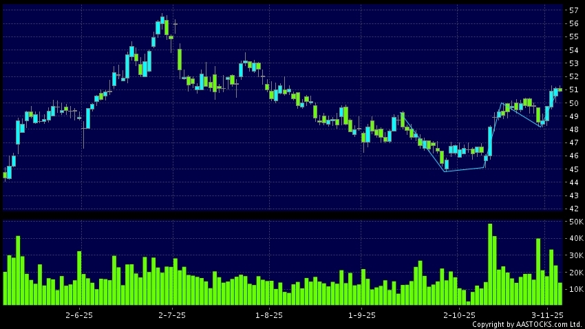 Disclaimer:The information, financial market data, quotes, charts, statistics and / or various technical analysis indicators are automatically generated based on the analyses and interpretations of publicly available information and should be used as references only at your own discretion. Such automatically generated content does not reflect the views or opinions of AASTOCKS.com Limited nor does AASTOCKS.com Limited make any guarantees to their accuracy, completeness, timeliness or correctness. You are advised to consult independent professional advice to verify pricing information or to obtain more detailed market information. Any uses of information or trades executed following the said automatically generated content are taken at your own risk for your own account.