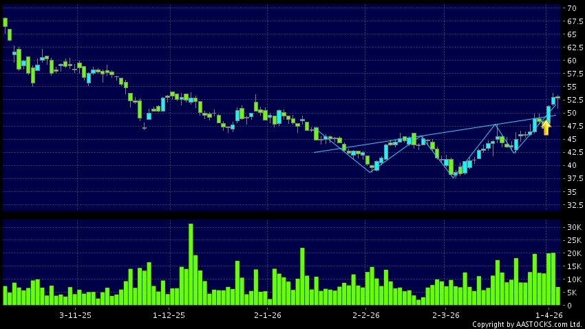 LEAPMOTOR(09863.HK) appears an upside breakout, rose above the neckline. Last printed at 52.600; fell 0.755%; on volume of 7.09M shares and turnover of $368.46MRecent PerformanceIn...