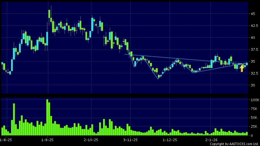 头肩底是典型的利好讯号,当股价升穿阻力线时,升势确认股价将持续上升,技术走势向好。(港股报价延迟最少十五分钟。沽空资料截至 2026-02-03 16:25。)