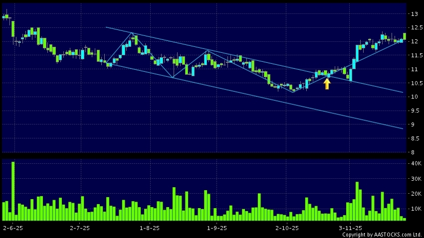 区域突破指股价在过去的一段时间只在一个范围在内活动,然後股价上升作出突破,升穿区域的顶部,技术走势向好。(港股报价延迟最少十五分钟。沽空资料截至 2025-11-27 16:25。)