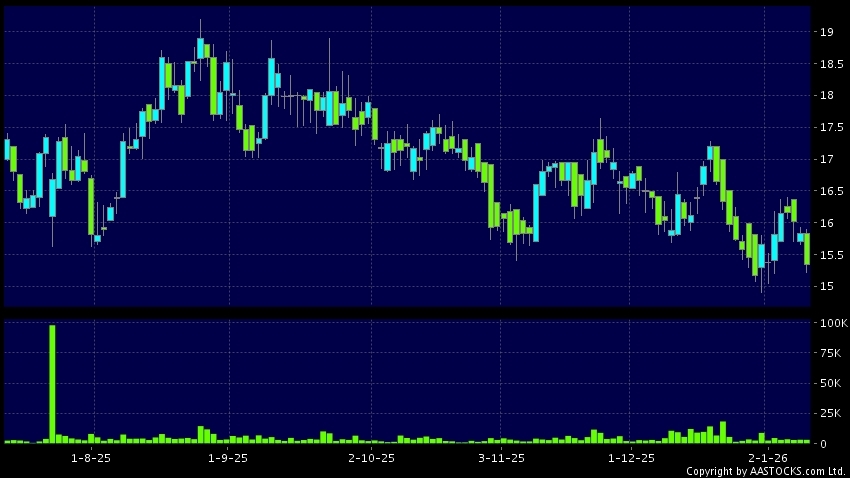区域突破指股价在过去的一段时间只在一个范围在内活动,然後股价下跌作出突破,跌穿区域的底部,技术走势偏软。(港股报价延迟最少十五分钟。沽空资料截至 2026-01-12 16:25。)