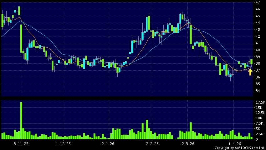黄金交叉是一个利好讯号,指股价的短期移动平均线升穿长期移动平均线,例如50天线升穿250天线,在图表上构成交叉的形状。股价通常会上升形成一个上升趋势,技术走势向好。(港股报价延迟最少十五分钟。沽空资料截至 2026-04-20 16:25。)