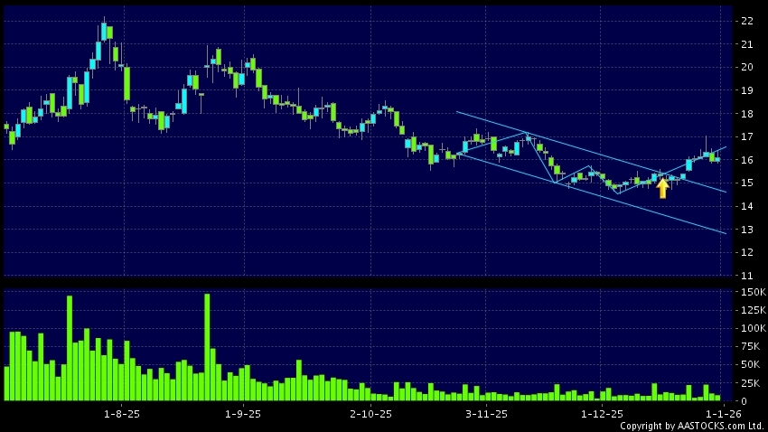 区域突破指股价在过去的一段时间只在一个范围在内活动,然後股价上升作出突破,升穿区域的顶部,技术走势向好。(港股报价延迟最少十五分钟。沽空资料截至 2026-01-12 16:25。)