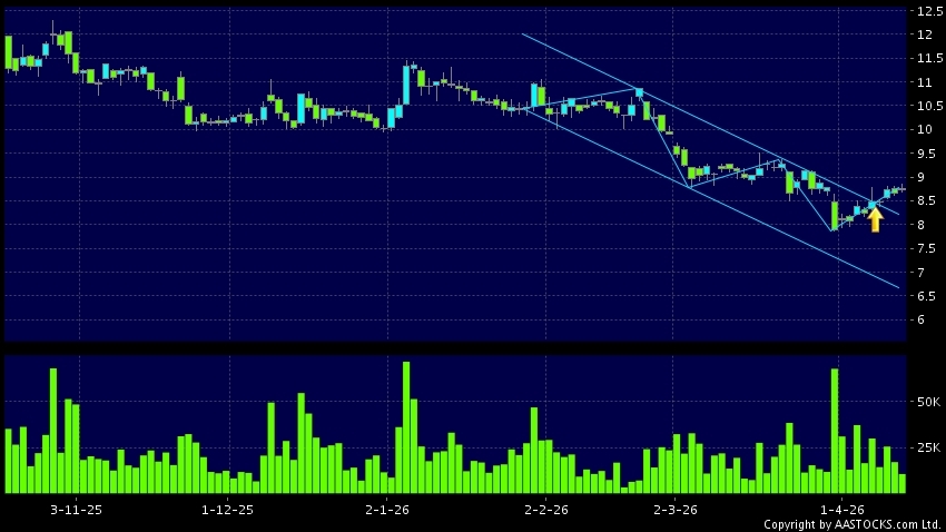 区域突破指股价在过去的一段时间只在一个范围在内活动,然後股价上升作出突破,升穿区域的顶部,技术走势向好。(港股报价延迟最少十五分钟。沽空资料截至 2026-04-20 16:25。)