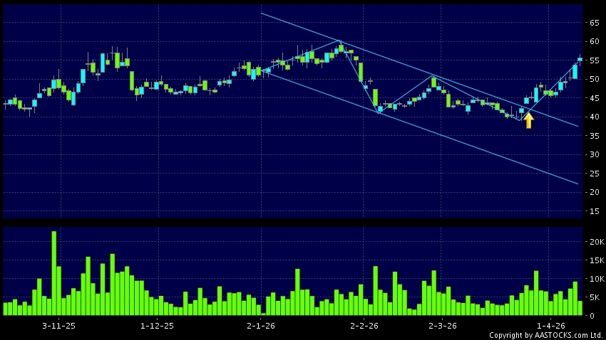 区域突破指股价在过去的一段时间只在一个范围在内活动,然後股价上升作出突破,升穿区域的顶部,技术走势向好。(港股报价延迟最少十五分钟。沽空资料截至 2026-04-20 12:25。)