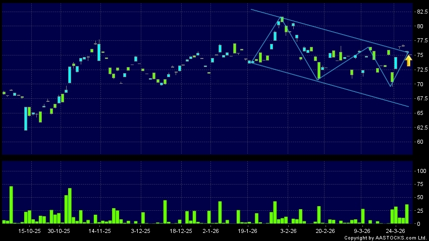 区域突破指股价在过去的一段时间只在一个范围在内活动,然後股价上升作出突破,升穿区域的顶部,技术走势向好。(港股报价延迟最少十五分钟。)