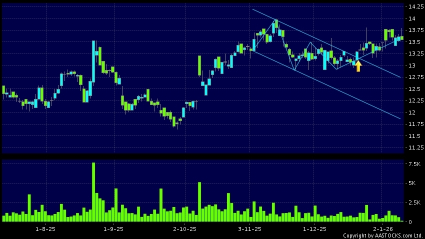 區域突破指股價在過去的一段時間只在一個範圍在內活動,然後股價上升作出突破,升穿區域的頂部,技術走勢向好。(港股報價延遲最少十五分鐘。沽空資料截至 2026-01-12 12:25。)
