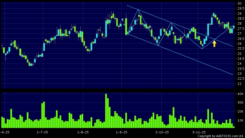 區域突破指股價在過去的一段時間只在一個範圍在內活動,然後股價上升作出突破,升穿區域的頂部,技術走勢向好。(港股報價延遲最少十五分鐘。沽空資料截至 2025-11-28 16:25。)