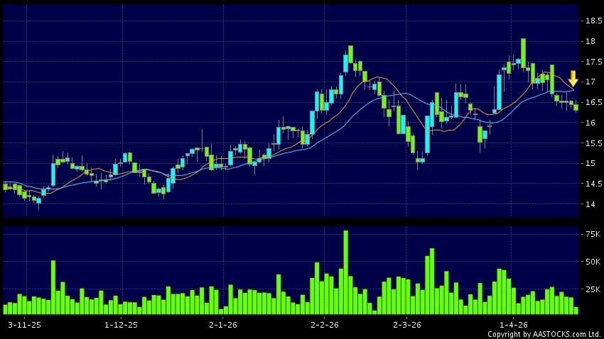 死亡交叉是一個利淡信號,指股價的短期移動平均線跌穿長期移動平均線,例如50天線跌穿250天線,在圖表上構成交叉的形狀。股價通常會下跌形成一個下降趨勢,技術走勢偏軟。(港股報價延遲最少十五分鐘。沽空資料截至 2026-04-23 16:25。)