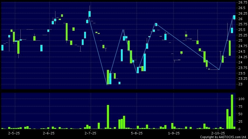免責聲明:以上金融市場數據、報價、圖表 及/或各種技術分析指標乃根據公開資料分析和演釋自動生成的,僅作參考使用。此類自動生成的內容並不代表AASTOCKS.com Limited的立場。AASTOCKS.com Limited並不保證其準確性、完整性、實時性或者正確性。閣下應諮詢獨立專業意見,以核實定價資料或獲取更詳細的市場信息及須為所有跟隨此類自動生成的內容執行的交易或使用該內容負責。