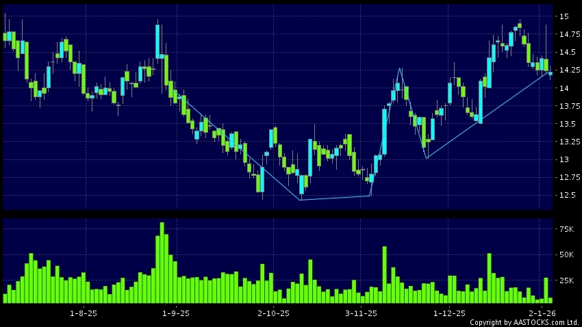 杯柄形突破是一個向好的技術形態,將利好股價走勢。(港股報價延遲最少十五分鐘。沽空資料截至 2026-01-12 16:25。)
