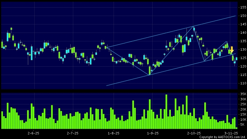 京東集團-SW(09618.HK)  +4.100 (+3.339%)    沽空 $3.30億; 比率 28.333%   呈現區域下軌突破。現價報125.200,上升1.954%,成交量2.33百萬股,成交額2.91億。