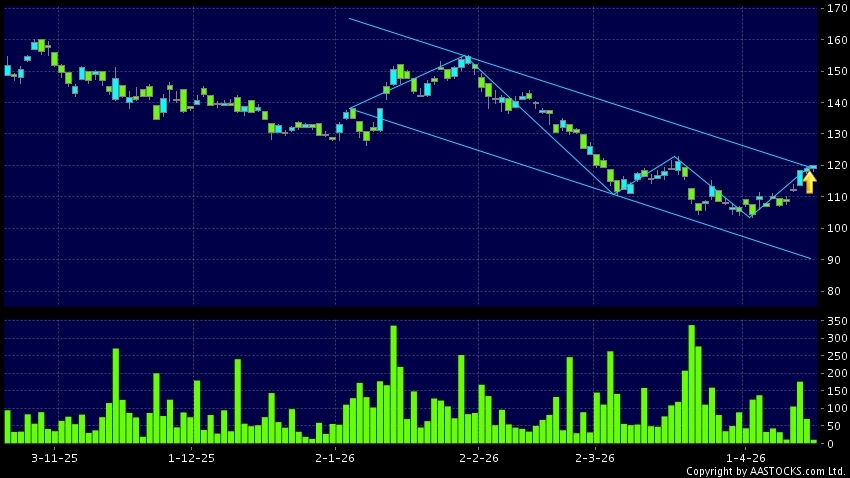 區域突破指股價在過去的一段時間只在一個範圍在內活動,然後股價上升作出突破,升穿區域的頂部,技術走勢向好。(港股報價延遲最少十五分鐘。沽空資料截至 2026-04-20 12:25。)